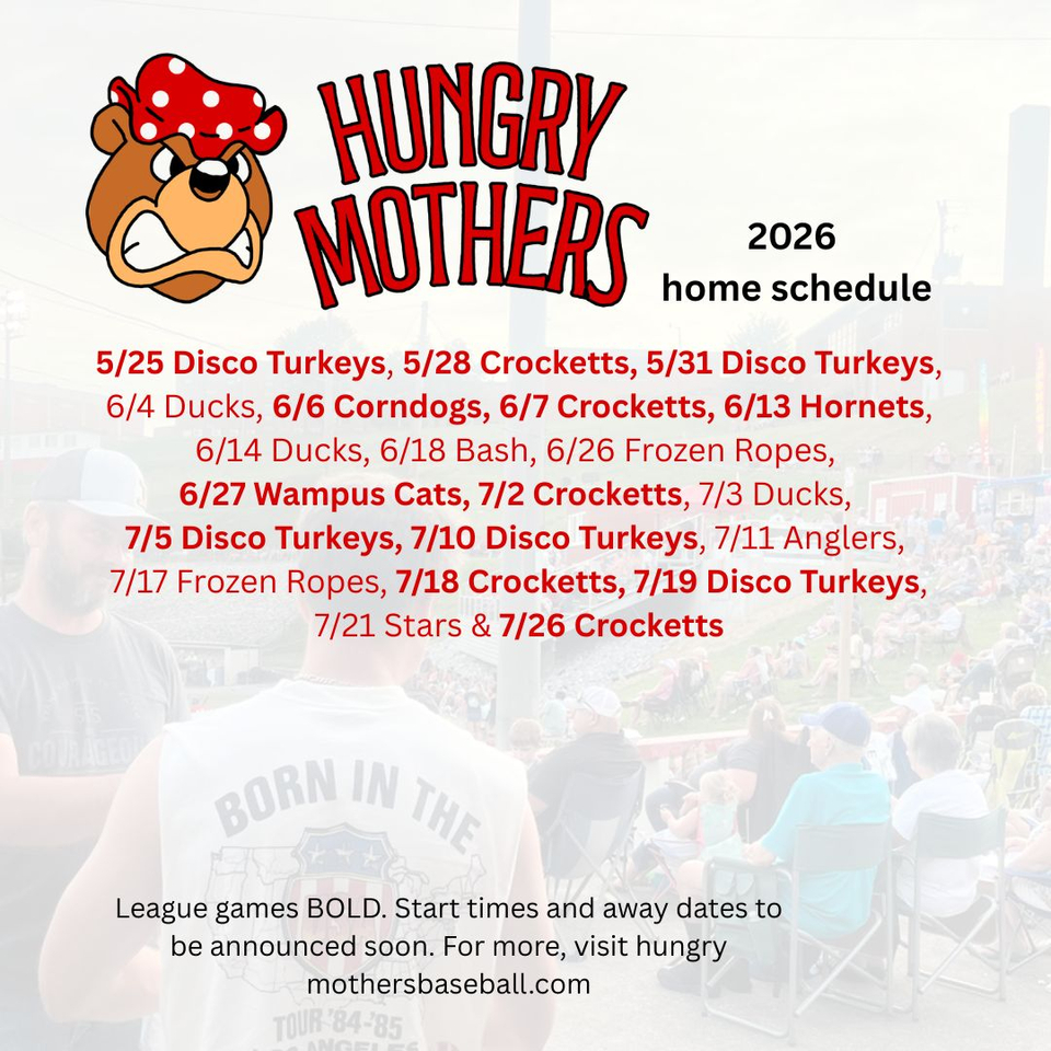 Game times and additional details for the season will be announced soon. Fans can follow along and stay updated at hungrymothersbaseball.com.